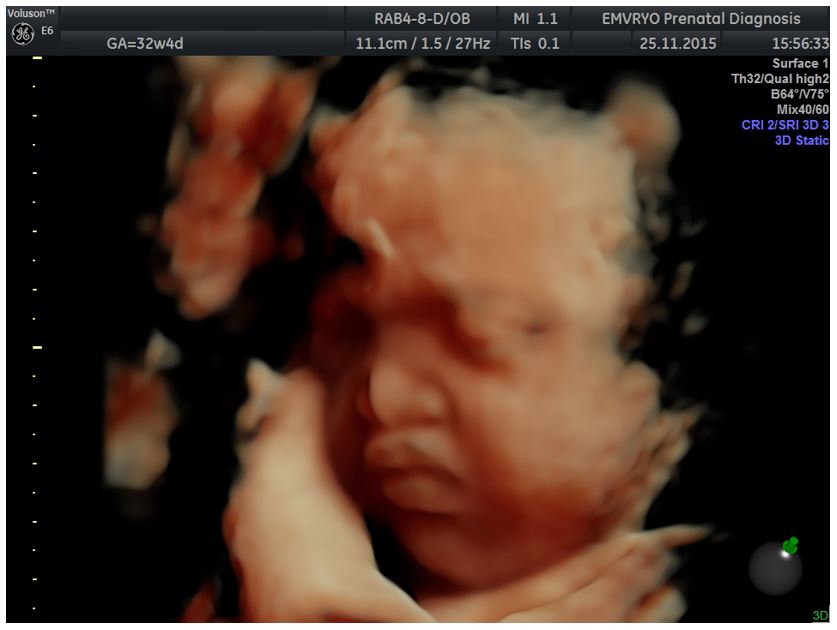 Figure 2: 3D reconstruction of the face in the same fetus at 32+4 gestational weeks