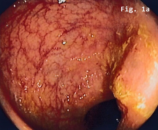 A 24 year old woman complained of recurrent lower abdominal pain for 6 months. She was referred for colonoscopy. There was no palpable mass on digital rectal examination. Blood chemistry, full blood count, coagulation profile, al-fa-fetoprotein and carcinoembryonic antigen were within normal limits.