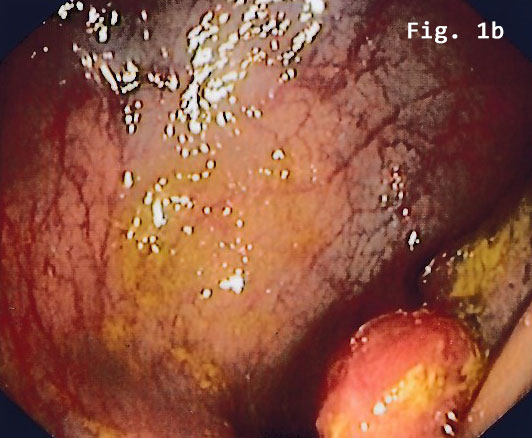 Colonoscopy revealed a semi-circular polypoid lesion in the sigmoid colon suggesting malig-nancy [Figure 1].