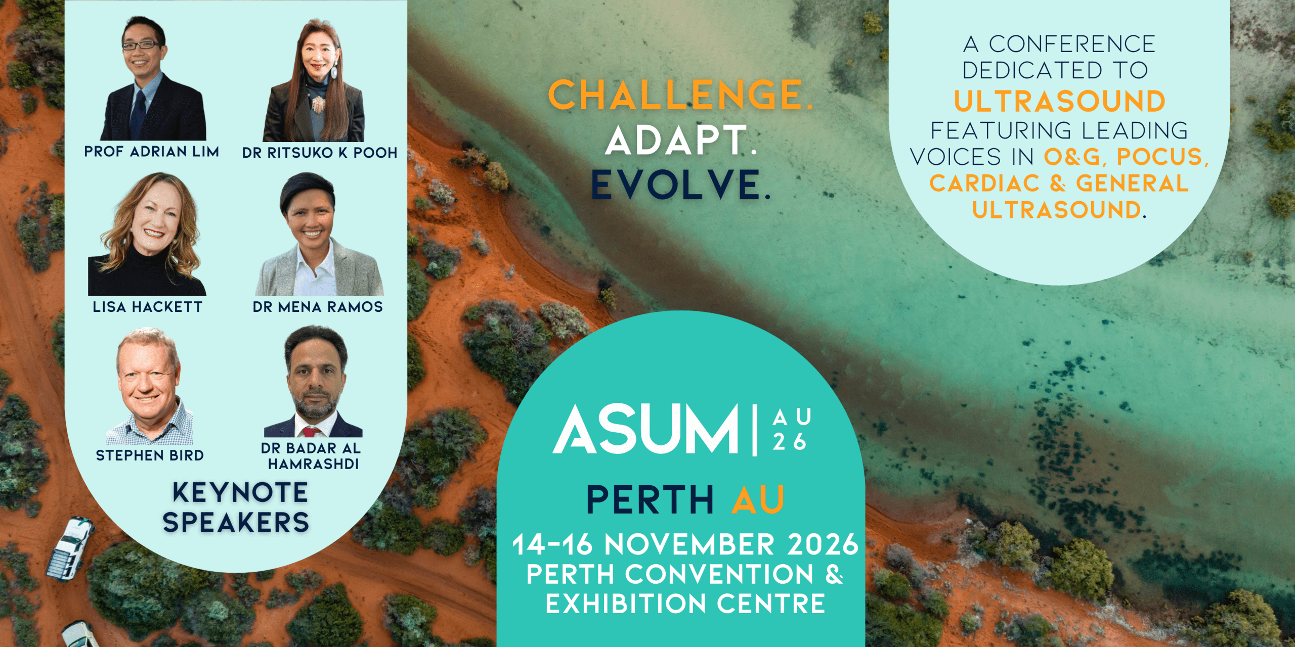 The Australasian Society for Ultrasound in Medicine (ASUM), is delighted to invite delegates to join us in Perth, Boorloo, Western Australia for ASUM AU26 from 14-16 November 2026.