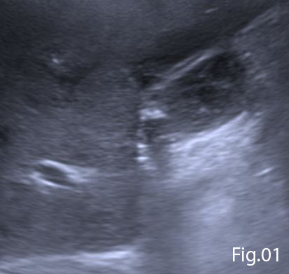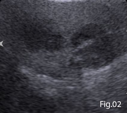 A 74-year-old male presented in the emergency department with clinical evidence of generalised sepsis. Clinical examination revealed a soft non-tender abdomen with a history of normal bowel movements. A preliminary clinical diagnosis of community acquired pneumonia was made based on CXR appearances of consolidation. Biochemistry demonstrated acute kidney injury (AKI) and severely deranged liver function tests (LFT). An ultrasound of the abdomen was undertaken.
