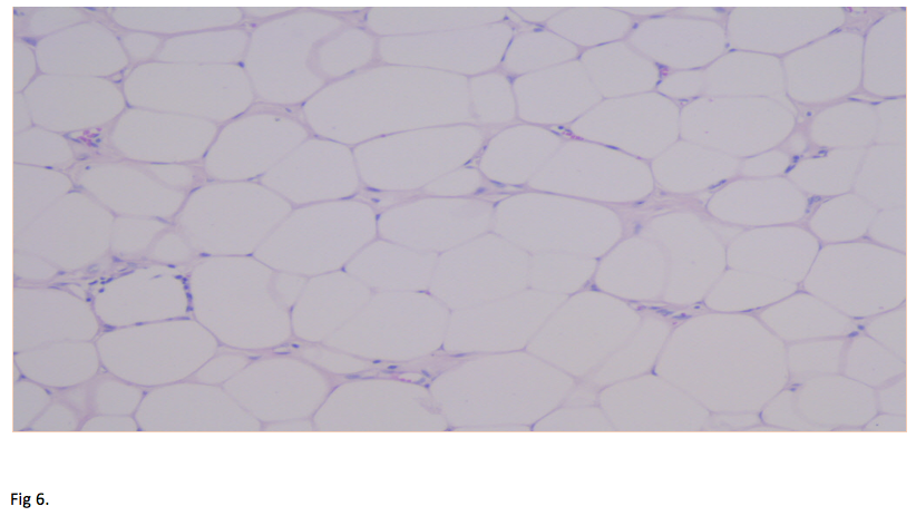 We report the case of a 66-year-old gentleman, known to suffer from high blood pressure, diabetes mellitus type 2, dyslipidemia, cervical and lumbar spondylosis, who presented to the emergency department with asthenia, pallor, melena. On physical examination, the patient was tachycardic with a heart rate of 120, and had a blood pressure of 100/60. He was pale but conscious and orientated. Cardiovascular and respiratory examinations were normal. His abdomen was soft, non-distended, bowel sounds were present and no palpable masses were felt. His laboratory investigations showed a mild normochromic, normocytic anaemia, low haematocrit, hyperglycemia, hypercholesterolemia. The patient was initially resuscitated and stabilized with intravenous fluids and proton pump inhibitors were initiated (iv 80 mg bolus and continuous infusion 8 mg/h). A naso-gastric tube was inserted which produced 300 ml of fresh blood. The patient underwent an urgent upper GI endoscopy which revealed an antral submucosal tumour with an ulcer over the mass. No active bleeding was seen during the procedure. A CT scan of the abdomen and pelvis highlighted a 30/20/18 mm oval shaped soft tissue lesion of fat density arising from the posterior wall of the stomach, with no associated lymphadenopathy. The liver, spleen, and pancreas all appeared normal (Fig 1,2). EUS has been performed and revealed a 30/18 mm intensely hyperechoic lesion continuous with the submucosal layer of the GI tract wall. The lesion was also soft on elastography, and as all the features were suggestive of a benign lesion, tissue sampling was not performed at that stage (Fig 3,4). The patient’s case was discussed at the Tumor Board meeting. The joint decision was to proceed with an exploratory laparoscopy and resect the benign mass. Histopathological examination confirmed the diagnosis of lipoma (Fig 5,6).