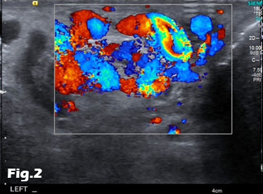 Figure 1:Scrotal ultrasound showing left sided varicocele.