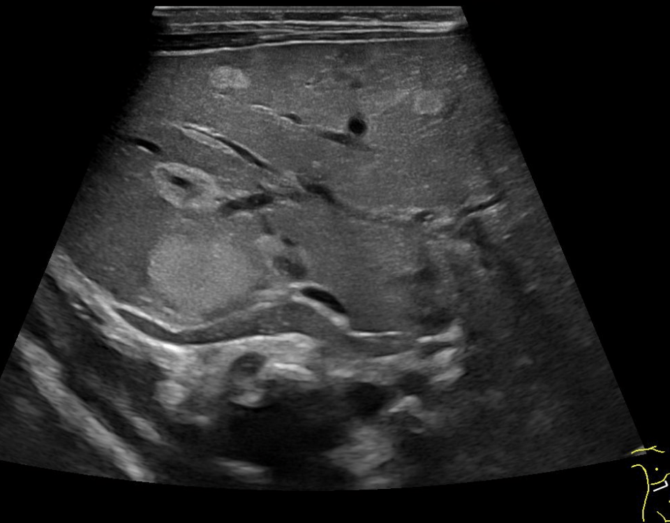 We present the case of a 59-year-old male, previously fit and well who presented to the General Practitioner with a 3 week history of epigastric pain, shortness of breath and unintentional weight loss. On examination, there was evidence of abdominal distension and palpable swelling of left testes.