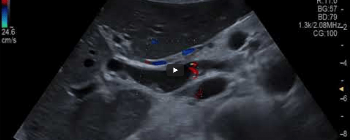 Case: The 55-year-old female patient was admitted as an emergency case with severe, wave-like pain in the upper right abdomen that had been ongoing for several hours, radiating to the right shoulder and accompanied by nausea, vomiting, and the onset of yellowish discoloration of the sclera.