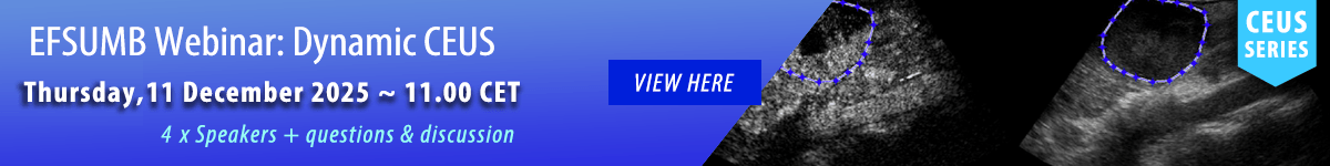 Part of the EFSUMB CEUS Webinar Series, 'Dynamic CEUS', takes place on Thursday 11 December at 11.00 CET and will be hosted by Sintesi on behalf of EFSUMB.